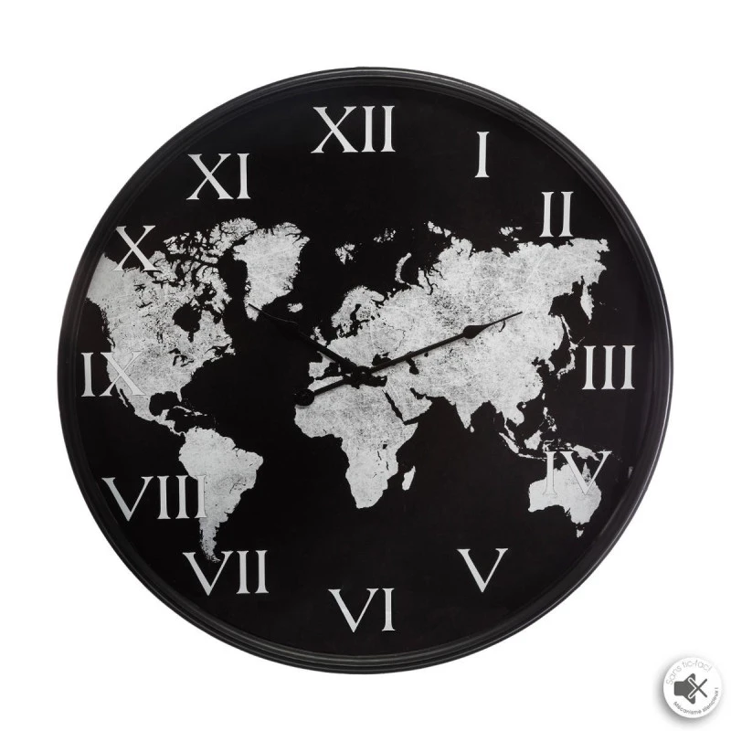 Horloge en métal avec motif mappemonde de la marque Atmosphera. Cette horloge de 57cm saura vous séduire par son design « carte du monde ».