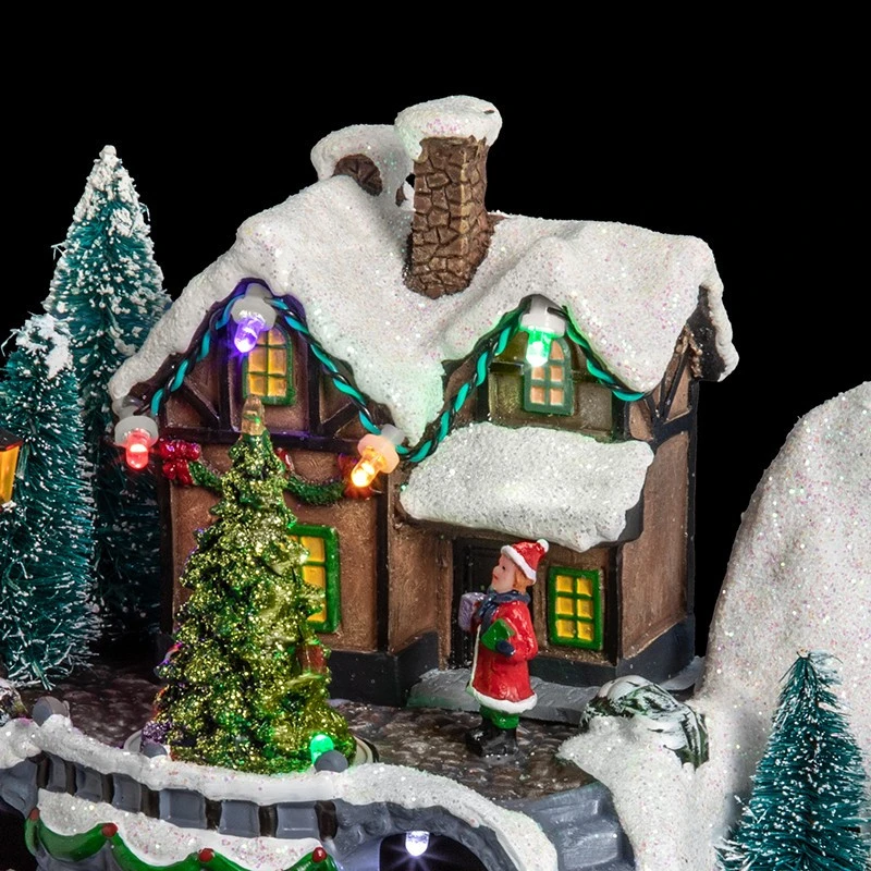 Village de Noël lumineux avec bonhomme de neige et traineaux animés. Ce village amènera la magie de Noël chez vous…